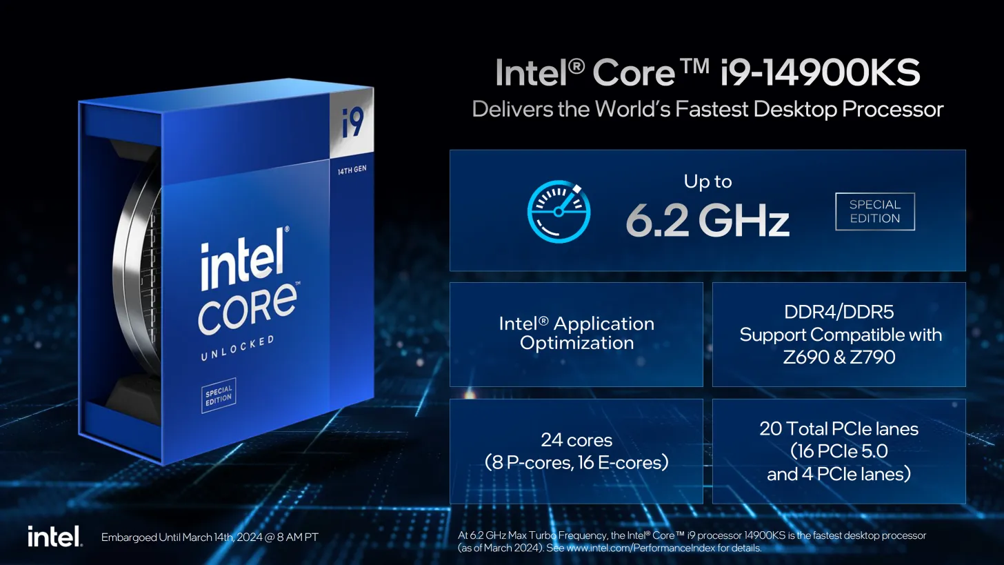 Intel mengumumkan prosesor baru paling kencang saat ini yakni Intel Core i9-14900KS yang merupakan bagian dari keluarga prosesor generasi ke-14.